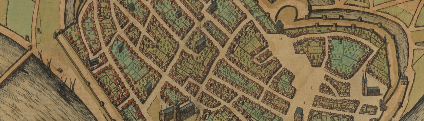 Tot ongeveer 1500 was de stad het belangrijkste humanistische boekdrukcentrum van Noord-Europa. Het stratenpatroon van Deventer op deze kaart uit 1652 is vandaag de dag nog ongewijzigd